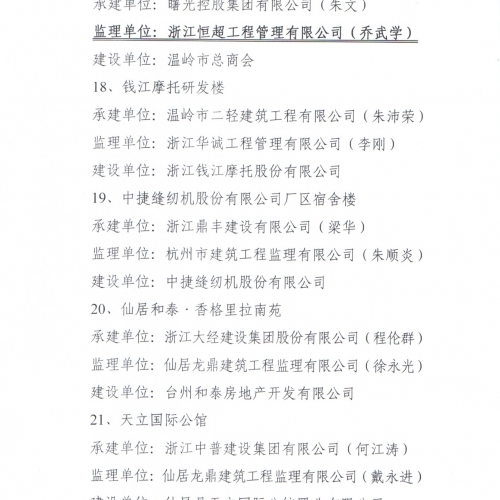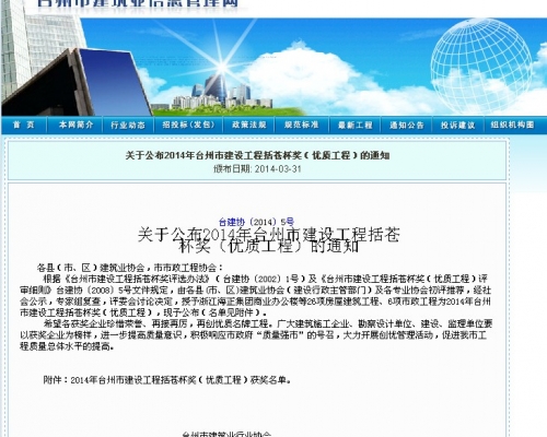 2014年台州市建设工程括苍杯奖(优质工程)