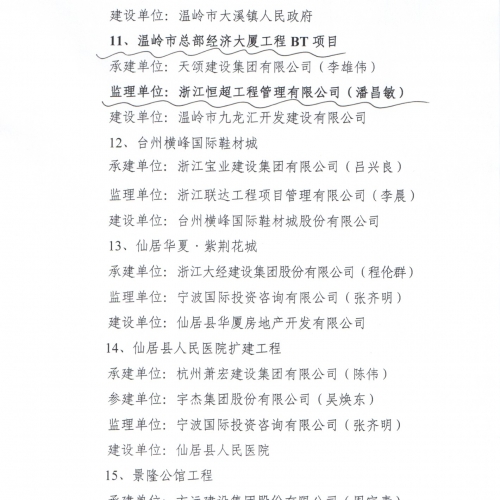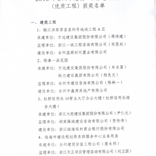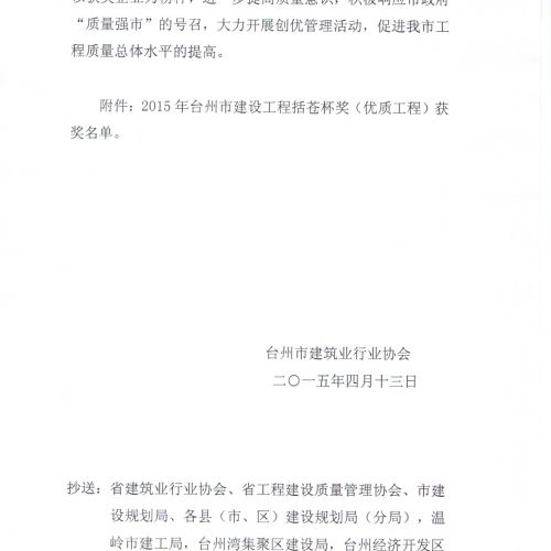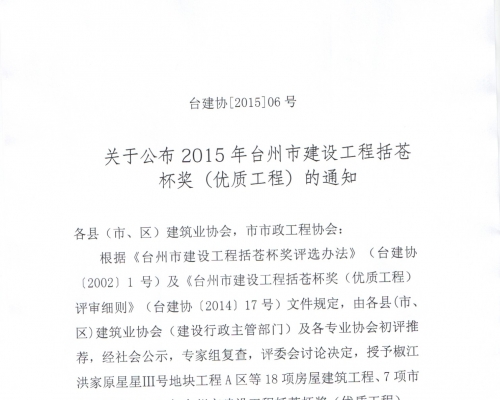 2015年台州市建设工程括苍杯奖(优质工程)