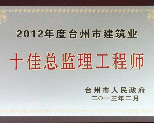 2012年度台州市建筑业十佳总监理工程师