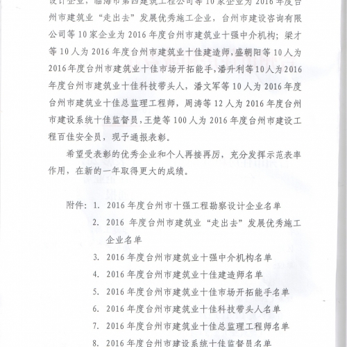 2016年度台州市建筑业十强中介机构