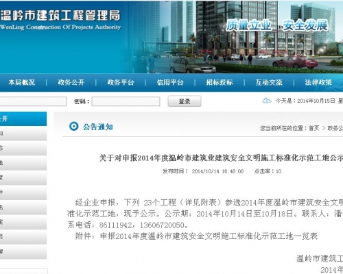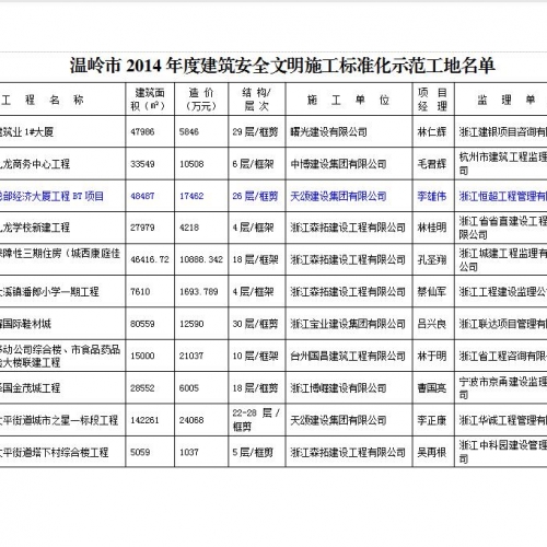 2014年度温岭市建筑安全文明施工标准化示范工地