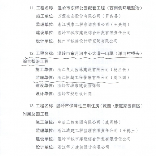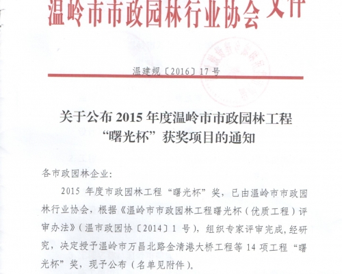 2015年度温岭市市政园林工程曙光杯奖