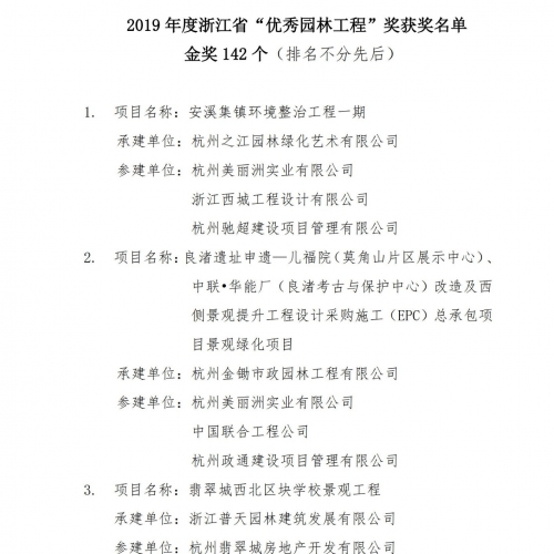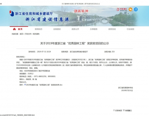 2019年度浙江省优秀园林工程奖