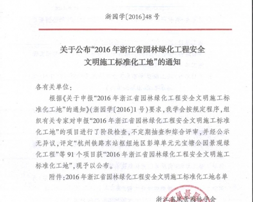 2016年浙江省园林绿化工程安全文明施工标准化工地
