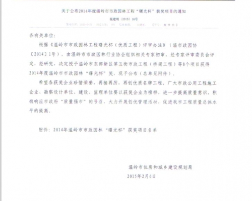 2014年度温岭市市政园林工程曙光杯奖