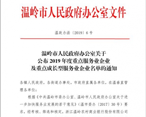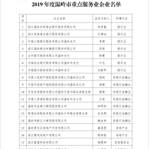 2019年度重点服务业企业