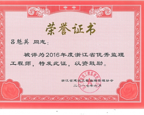 2016年度浙江省优秀监理工程师