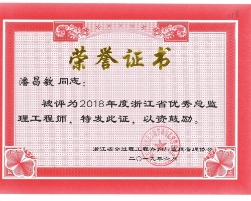 2018年度浙江省优秀总监理工程师