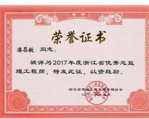 2017年度浙江省优秀总监理工程师