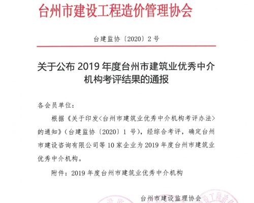 2019年度台州市建筑业十强中介结构