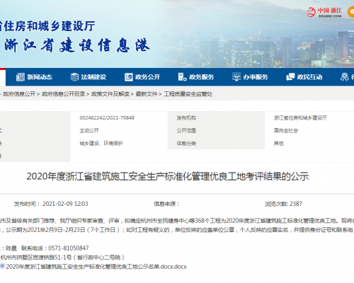 2020年度浙江省建筑施工安全生产标准化管理优良工地