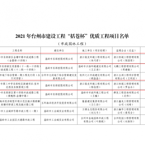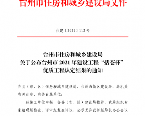2021年建设工程“括苍杯”优质工程