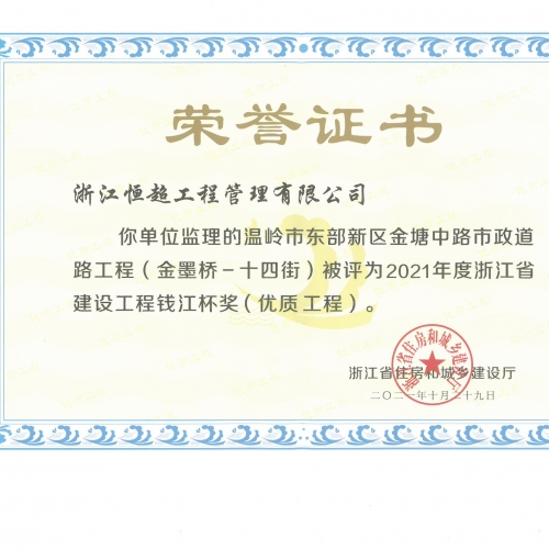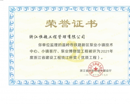 2021年度浙江省建设工程钱江杯奖(优质工程)