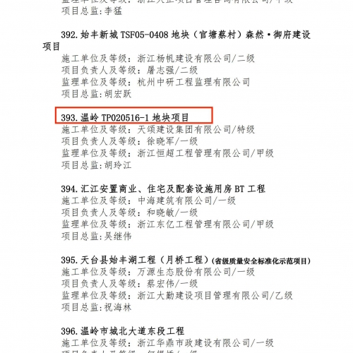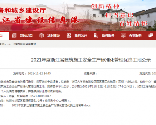 2021年度浙江省建筑施工安全生产标准化管理优良工地