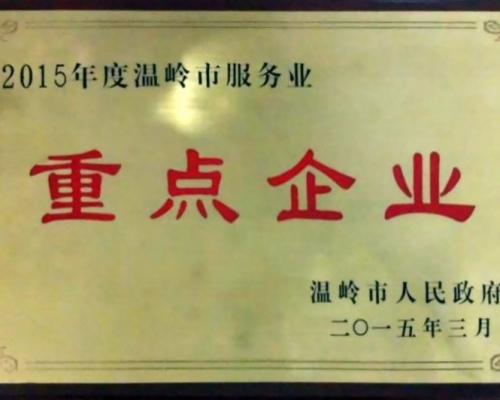 获奖名称 : 2015年度温岭市服务业重点企业