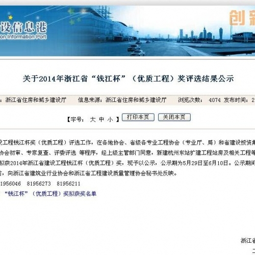 2014年度浙江省建设工程钱江杯奖(优质工程)