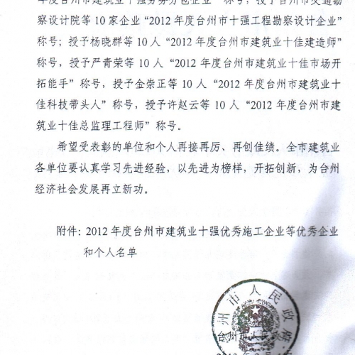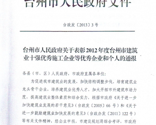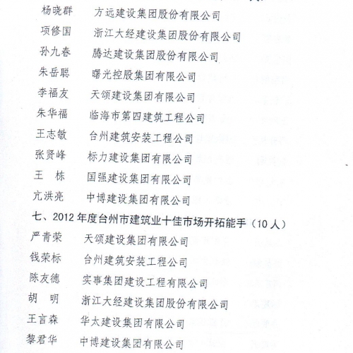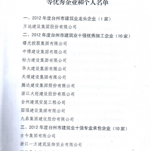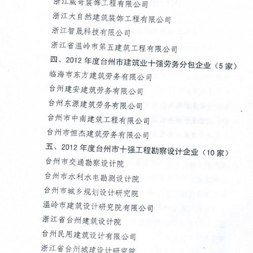 2012年度台州市建筑业十强中介机构